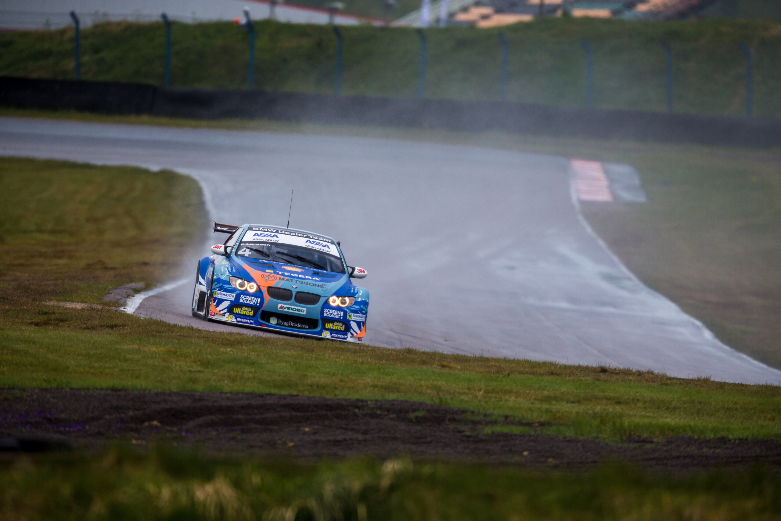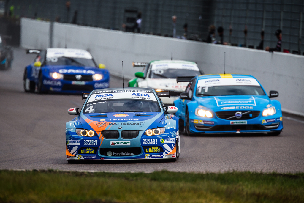Det blev en andraplats för Fredrik Larsson i dagens första STCC-heat på Anderstorp som kördes på en blöt men upptorkande bana där alla startade på regndäck.