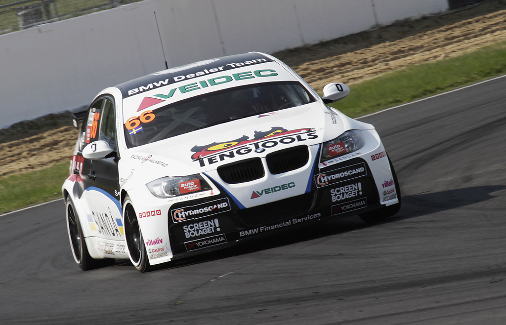 The accident occurred on the penultimate lap of the first STCC-race of the season at Jyllandsringen in Denmark. Richard Göransson was leading by 8,1 seconds and drove safely to keep the lead constant. He approached the first corner with a speed of 184 kph as he started braking. At this time the rear brake pad fell off causing Richard to lose brake pressure and locking up the front wheels making it impossible to stear. The car went off the track at 107 kph. According to the findings of the team an asphalt edge at the end of the track contributed to him getting slightly airborne and not touching the first part of the gravel trap. He hit the tyre barrier and the concrete wall behind it with a speed of 86 kph. Richard Göransson has done everything in his power to prevent the accident to happen. No suppliers are to be blamed for the accident and all safety devices in the car and for the driver has worked as they are supposed to work. The G-force systems in the car measure a maximum G-force of 5G and that is the G-forces measure for both the first impact and the return impact back from the concrete wall. The team findings estimate the G-forces for the first hit with the concrete barriers to be at least 10-20G.